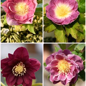 ようやくうちで咲いたクリスマスローズ達です😀 上は2株とも加藤さんのエクリプス系、左下が広瀬さんのレッドオーレア、右下はソレイユ系です😊 ピンクの花が咲くと明るくなりますね💕 今日も暖かい天気に恵まれ、開花が進みました☺️ でも、明日からはまた寒くなりそうです🤔