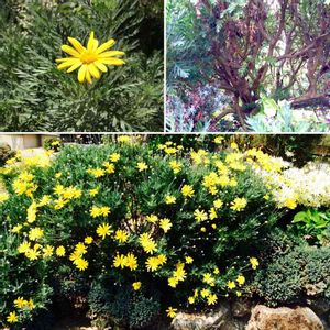 ユリオプスデージー ✨✨ やっと、一輪咲きました🎵 嬉しいな💕 右のは裏側の根元で、ヒドイ🌀 下のは、切り戻して、春に咲いてた頃の写真です😄