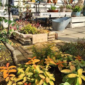 ヒペリカム ゴールドフォーム。 黄金色やオレンジ色に変化した葉が日にあたって綺麗です☺💕