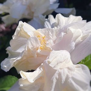ハイビスカス 八重咲き♡ 夏の咲き姿より コッチのほうが私の好みかな💕 前回の姿は(10/24) 真っ白で 八重もキツめ 寒くなった方が 優しい感じに変身〜𖤣𖥧𖡼.𖤣𖥧