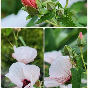 おはようございます☺ ヤノネボンテンカ タカサゴフヨウ フヨウ科 常緑低木 一日花 お花5cm位。 南アメリア原産 西日本中心に 野生化してます。 本当はお花白いけど、中心が深く赤いのと花脈が赤いので うっすらピンクに見えます。 蕾は、赤いです😌 このお花見つけるとつい後ろから見つめちゃいます👀