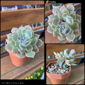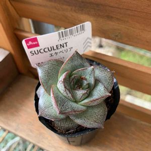 新入りさん✨ 先週ふらーとダイソーへ! 多肉コーナーへ! 肉厚でかわゆい🙆♀️置き場のことも考えないでお迎えしちゃう😅 久しぶりの☀️お外でパチリ 大和錦かな? タグはエケベリア! まーいっか
