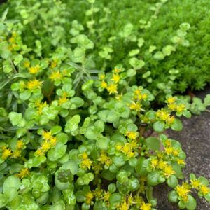 丸葉万年草💛咲き始めました✨ セダム増えて増え😅捨てることはできなくて😅大きな鉢にセダム丼を作りましたが増えます😅 🏠裏にパラパラと… お隣に2種類セダム植えてありますが増えまくってます😅葉挿し中の多肉も☺️
