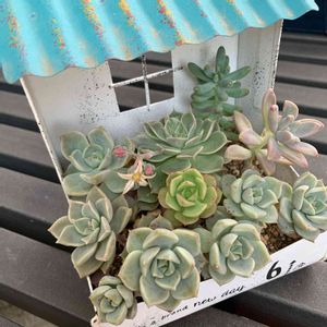 お菓子の粉ふるいてやつかな? ある多肉で寄せ植えしてみました✨ 今回2回目なんだけど1回目はなかなか根付かなくて😅今回は水苔にしょうかと悩んだけ以前と土を変えてリベンジ! 寄せ植えして1週間、根付いたよです❣️