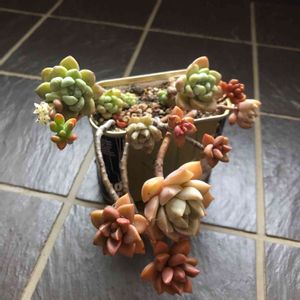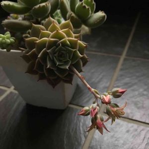 多肉ハマったときのポイポイ鉢! 初めて咲く🙌 今年こそは植え替えしょうと5年になる😅 でも初めて咲くてのは嬉しい
