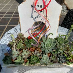 こんにちは😃 多肉好きのお友達が作ってくれた寄せ植えです😍素敵過ぎ💕ありがとう🥰💕