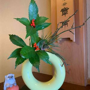 実家の庭から年末チョッキンしてきた千両and近所の友達のお庭の柚子🍊どちらもうちの庭にはないけれど、毎年ありがたいです😊🎍