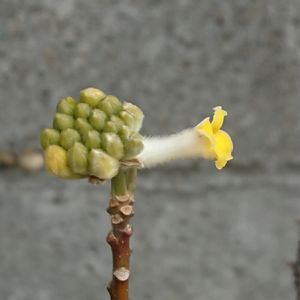 こんにちは😃 昨夜から降っていた雨がやみ 曇り空。 今日のお花 ミツマタ お花屋さんで撮らせていただきました。 3月初めで、まだ蕾でした。