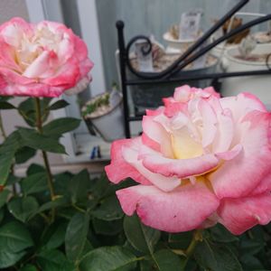 バラ、シークレット 秋薔薇の季節になってきました。ぼちぼちと咲いています。 でも、つい、油断したら、黒星病、うどんこ病に〜😭 ひどいところは切って、あとは薬で様子を見ています。 食卓に一輪飾りました😆