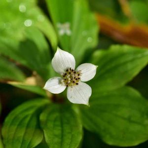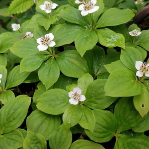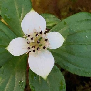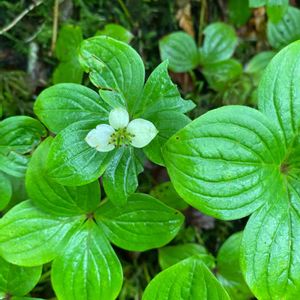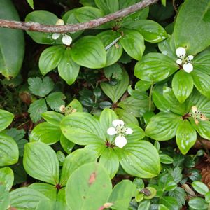 尾瀬で出会った花💠 ゴゼンタチバナ(御前橘) ミズキ科の多年草で花のように見える白い部分は装飾花で花は真ん中の小さな集まり 尾瀬の樹林帯でよく見かける 📷️ 2022.7.17