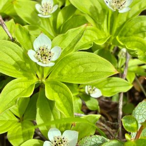 おはようございます😊 池の平湿原で出会った白いお花 ゴゼンタチバナ♡♡ 白いお花のように見えるのは装飾花とのこと🤔 お花は真ん中の部分だそうです。 3枚目を拡大してみてください。 🏷白い水曜日♡