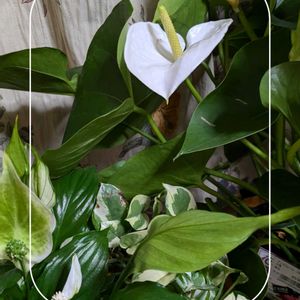 こんばんは🌛 今日のお花のアンスリウムの 白花があります❀❀❀❀❀❀ お花が白からp2グリーンに変化していくのでとっても魅力的で長い間楽しんでます p4 似ているスパティフィラムと並べて愛でるのがとってもお気に入りです💕