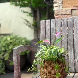 ポトス・エンジョイ 冬にほとんど茎だけになっていたものを2号サイズの小さな吊り鉢から5月20日に4号鉢に植え替えて今こんな感じ。写真2枚めが投稿し忘れた植え替え直後の写真。 土はココチップと軽石です。