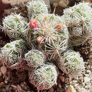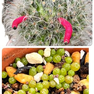 この前、ヤフーのオークションで買った メロカクタス属 層雲☁️やっとお迎えできて嬉しかったな! 中央右が同じショップのマミラニア属 桜月、左がおまけにくれたノトカクタス属 獅子王丸です。アリガトウゴザイマス! 大切にします😁 下の白いのは、娘が買ったノトカクタス属 白閃小町 です。🌵✨🤭