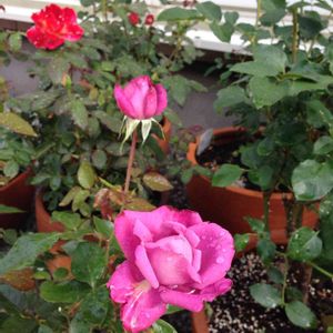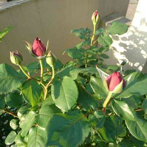 バラ ブルーリバーの蕾が沢山ついてます❤ 病気にも強くて秋までよく咲いてくれる❗ 藤色のあなたに早く会いたいな~⤴