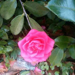 葉っぱは椿のようだけど この時期なので違うよね すごく綺麗でした。