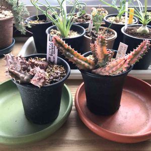 久々に登場、ガビちゃんこと峨眉山。ゆっくりゆっくり分頭していきます。向こうに見えるはタネから育てているアデニウム。兄弟でも大きさに大差があるのが実生の面白さ。難しく言えば遺伝的多様性ですね。