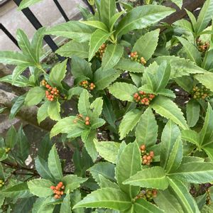 1️⃣センリヨウ 千両 2️⃣マンリョウ 万両 色づいてきました 🔴🔴🔴🔴🔴🔴 鳥🐧さん達に食べられる前に ✂️チョッキンしないと!