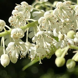 リョウブ リョウブ科リョウブ属 落葉小高木 北海道南部、本州、四国、九州に分布 丘陵や山の尾根に自生する。 若葉が食用となるため、飢饉に備えて植栽、貯蔵、採取を「令法(りょうぼう)」によって命じたことからリョウブと名付けられた。 花期6〜8月 白い小花が長さ10〜20cmの穂状になって咲く。 一つ一つの花はよく見るとウメに似ており、5弁花に見えるが、基部で合着した合弁花である。 小花の直径は1〜2cmほどで、雌しべ1つで先端は3つに裂け、10本ある雄しべは花冠の外へ突き出す。 花言葉は「溢れる思い 」 🏷️金曜日の蕾たち に参加させていただきます。