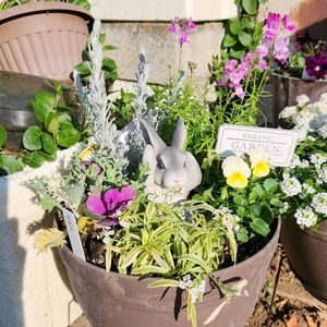 季節の寄せ植え 『エレモフィラ スノークリスタル』 『スーパーアリッサム フロスティナイト』 『葉牡丹 ジュエリーシリーズ プラチナローズ』 『ビオラ 品種不明』 『リナリア グッピー』 私的には大満足の寄せ植えになりました😊 いつもはパンビオちゃん達をメインに考えて寄せ植えにするのですが、今回はリナリアちゃんがとても可愛いかったので、リナリアちゃんに合うように他のお花を選びました(*^^*) いかがでしょうか?