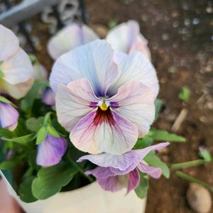 ビオラ 『Shine Viola シャインビオラ』 この子は初めてお迎えしました。 落ち着いた淡い色が、私を和ませてくれる優しい雰囲気のある子です。 家族は私以外あまりお花に興味がありませんが、いつか家族の誰かとお花を見ながらまったりしたいなぁ(*´ω`*)