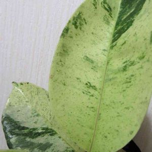 フィカス ジン 2021/8/19撮影 二つ目をお迎えしました。 最初の子は、全体的にもうちょっと濃い色…若草色みたいな感じです。 この子は、まだ若いからかしら?薄い色でかわいらしいです。 斑の入り方が私好みで、これからどんな新芽が出てくるのか、とても楽しみです♪