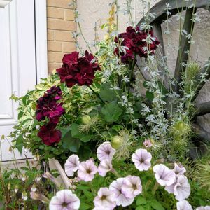◉アイビーゼラニウム トミー ◉ペチュニア ◉ロータス クレティクス ◉ニゲラ グリーンマジック 単植でいつもダメにしてしまうトミー、、単植がダメなら寄せ植えで夏越しに挑戦ヽ(*゚ー゚*)