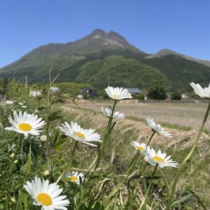 こんにちは😊 雲ひとつない今日の由布岳です。 最高❣️登りたいなあ‼️ 🍀マーガレット