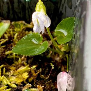 吹っかけスミレ💜フキカケスミレ 4/4に投稿した蕾が開きました🙌 そして奥にも1つ。 写ってないけどもう1つ蕾があります。 以前、閉鎖花が弾けたのですが、まわりに🌱が出ていません。ザンネン😔