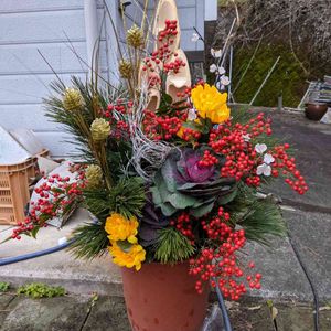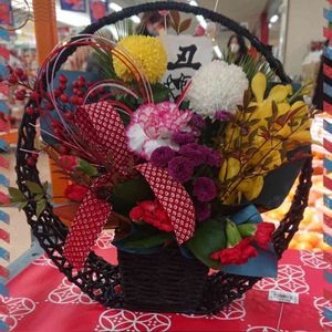 スーパーの花屋さんで見つけたお正月のフラワーアレンジメント♥️ 感じ良かったよ🍀。。😄