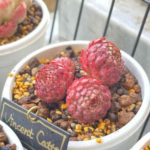 GWにお迎えしたビンセントカトー めちゃくちゃ子吹く&夏に弱いということで、すぐ4つに分けて室内管理組と屋外管理組にわけた。 一つ一番大きい子に花芽があり、根が定着してきたのと一緒に膨らんできた❤︎ 葉の一枚一枚がふっくらしてきて、鱗が逆立ってきたってかんじ✨ めちゃくちゃかわいい…なんとか夏越し成功したい〜