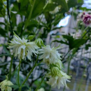 6月に種まきしたオダマキが咲いた😍 グリーンアップルだと思っていたら、ミヤマオダマキの白でした😅 グリーンアップルはまだのようだ。