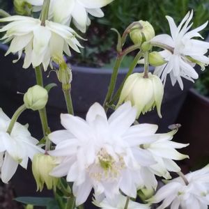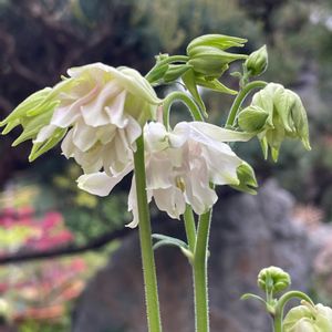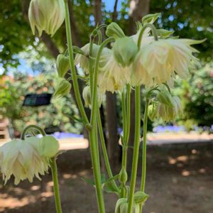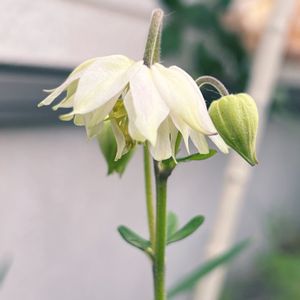 さわやかな朝に オダマキが映えます🤗 オダマキ グリーンアップル💓 グリーンから白へ💚🤍 下向き咲きなので すんごい格好で📷 足がつりそう🤣 皆さんのきれいなpicに憧れます😘