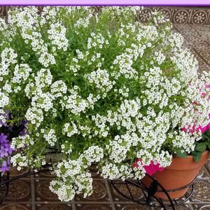 アリッサムをもう一枚 白です。 母の日の娘からのプレゼント、アイアン花台に乗せました♡