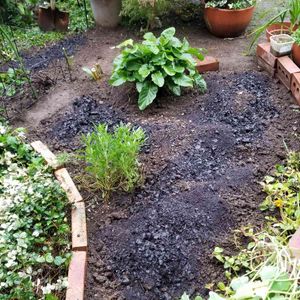 春のお花を植える為花壇整理♪ 腐葉土、牛ふん、肥料をまいて少し寝かせて起きましょう