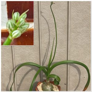 こんにちは😃 ウチの偽海葱さんです😆 以前投稿した、園芸店のゴミ箱🗑から頂いたちっこい玉ねぎ🧅のような謎の子が、大きくなりお花🌸を咲かせました😆