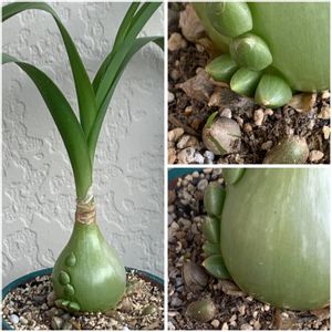 オーニソガラム・コーダツム✴️ 別名:偽海葱、子持ち蘭 艶々の球根💚 子沢山な上に分球し始めました🤣
