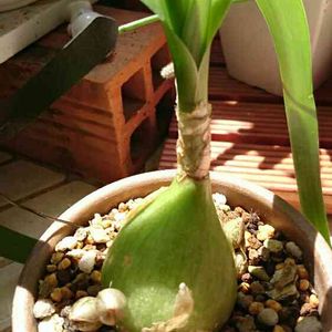 丈夫な球根ちゃん。 大きなたまねぎとながーい葉。 ストライプの花。なかなかオシャレな奴。 丈夫すぎ、殖えすぎで、かえってお店で売っていない😅なので名前もなかなかわかりませんでした。 デブな球根がイイんですが、今日は花を切って一輪挿し。 ウチのはどうしてうちにいるんだったか…?