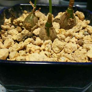 先日、偽海葱を購入しました 横に植わっているのはてっきり子株だと思っていたのですが 「二種類いますね、ラッキーですね」 と店員さんに言われました レジの方は名前を知らないみたいだったのですが手前の小さいのはなんと言う名前でしょうか?