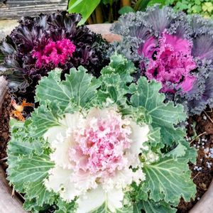 小さな葉牡丹さん ふんわりした雰囲気です 🤍💜🌱(ꕤ ॑꒳ ॑*)ノ🌱😆🤍