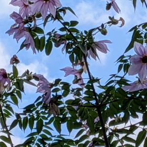 1️⃣青空と皇帝ダリアです。 2️⃣3️⃣ハボタン[葉牡丹) 4️⃣シロタエヒマワリ 5️⃣ウエストリンギア 🏷️土曜日はお空の発表会