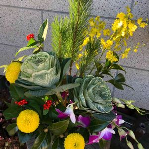 先月お迎えした 今日のお花🌼 葉牡丹💜💛 やっぱり冬の花と言えば 葉牡丹ですね❣️ 色がとっても綺麗(ღˇ◡︎ˇღ)