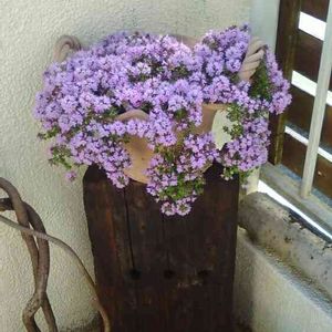 こんにちは〜 タイムの小花が好きで、、どんな風に撮ろうか?、苦戦して、、これだったら全体的に撮れたかな😄 後ろのペチュニア、ローズスターダスト、乱れてきたのでこの後、切り戻ししました🤗