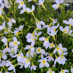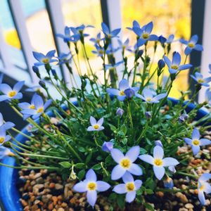 夏越しした青いヒナ草の花が咲きました。今年買い足した白のヒナ草も並べて小さなお花を楽しみます。
