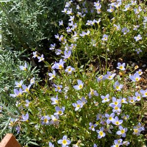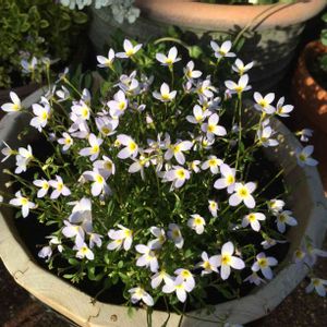 こんにちは😃今日の一枚です。 今日のスッキリ&ポカポカ陽気の陽の光を浴びているヒナ草💠です🤗 気持ちイイのぉ〜〜♨️😅 花弁の茎が四方八方に生えてます。人の人生もこんなふうにイロイロな方向で花咲を咲かせるのでしょうかね???笑