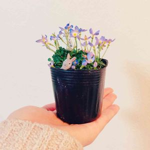 黒ポットだっていい 値札がつきっぱでもいい 生命線が手首まできてます🙉 この花、めっちゃ可愛ー(:.;゚;Д;゚;.:)ハァハァ ウサギゴケといい、苔っぽいのに花が咲いてるようなの好きみたい🤔 もけさんの園芸店巡りに便乗させて貰ってGETした子の1人🙋🏻✨多肉も買ったし、久々に女性ホルモンでまくりだー! 多肉は次回に続く…|λ............