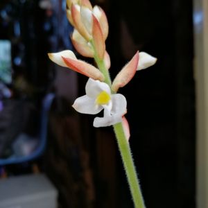 咲きました♡ アネクトキルス ロクスブルギー USA 名前長っ!!! ランの一種なのかなぁ…なんかお花の形がちょっとそれっぽく見える♪ (←調べる気なし笑) 伸びーーるお花なのは多肉達と同じねー♪