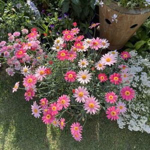 ピンクから白に色が変わるマーガレット🩷🤍ラブリーな感じで春にぴったり! 去年の夏枯らしてしまったので、今年は根腐れさせないように頑張ろう🥸