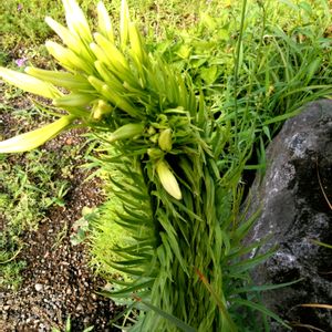 帯化ヤマユリ 昨年見て驚いた帯化ヤマユリの今年の様子を見てきました! ・帯化ヤマユリ! 「ヤマユリ(山百合)において稀に見られる「帯化(たいか)」現象が起きた個体を指します。これは茎が通常の円筒形ではなく、帯状に幅広く扁平になる植物の奇形の一種 帯化した株はエネルギー消費が激しく、球根が消耗し翌年に消滅する、または元に戻ることもある。 ヤマユリ以外のユリにも帯化現象は出るが、ヤマユリでの発生が圧倒的に多く、話題になることも多い。 発生頻度はおよそ1000〜2000本に1本程度とされる希少な植物現象」 ネットから! 開花していましたが、去年の株は無く近くに新たに4株ほどありました! どれも、去年のような高さはでは無く大きめの花が付いていました! 去年の見事な株はやはり球根が弱って消えてしまったと思われます❗️ ①花は詰まった感じで付いています! ②咲き始めた株! ③蕾.帯化の茎がハッキリ分かります! ④普通のヤマユリ! (この森は日本一の群生地らしい) ⑤昨年の帯化ヤマユリ! (去年の見事な株で再登場) 7月17日撮影
