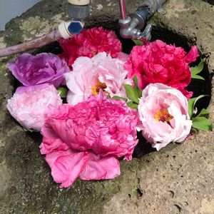 GW明けに大根島に行きました。でも牡丹はもう終わりがかってましたけど。 で次に中国ぼたん園に行ったんですが、なんと‼︎ 気温が高くて牡丹が咲き終わったため4月いっぱいで閉園してました。GWも開いてなかったんですね。残念です。 でもその向かい側の並びの畑3軒が牡丹の販売してました。咲いてるのも咲き終わったのもありましたが、とにかく激安⁉️岡山では絶対買えない金額だし、種類的にも絶対買えない感じの花だったのでたくさん買ってしました。